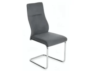 Alcalá es una silla de comedor con estructura tipo patín cromado y tapizado en tela Lido, que combina comodidad y una línea muy estilizada.