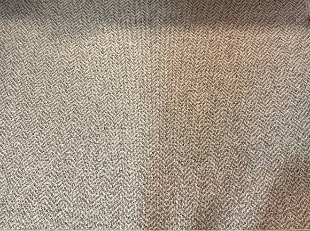 Alfombra de tejido plano en tonos gris y blanco con dibujo de espiga, muy resistente y fácil de combinar con cualquier estilo nórdico o moderno. Ideal para salón, comedor o despacho, aporta textura y calidez sin recargar el espacio.