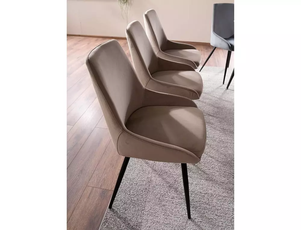 Silla Cobe Velvet combina comodidad y elegancia atemporal en un diseño de líneas suaves y refinadas. Tapizada en terciopelo Bluvell, su superficie es agradable al tacto y refleja la luz con un sutil brillo. El asiento y respaldo ergonómicos garantizan una postura cómoda, mientras que las patas de metal negro mate aportan estabilidad y un toque moderno. Perfecta para comedores, salones o espacios de trabajo con estilo contemporáneo.
