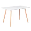 Fabricada con tablero DM de alta calidad, esta mesa destaca por su resistencia, durabilidad y fácil limpieza. La tapa redonda se apoya sobre patas en color haya con herrajes metálicos, creando una combinación decorativa muy versátil y elegante para el uso diario.