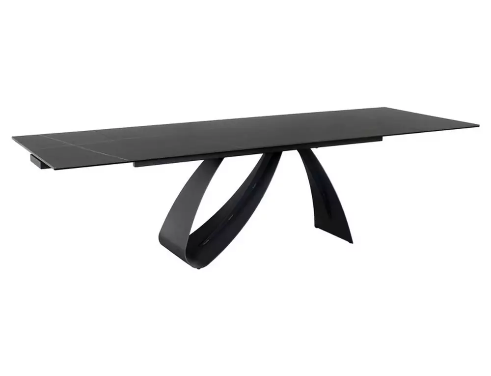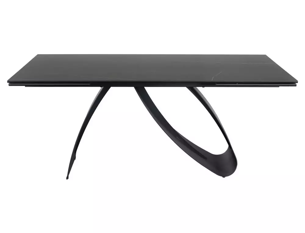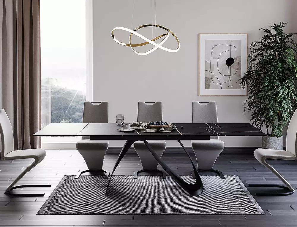 La mesa Duna es una combinación perfecta de diseño moderno, materiales de alta calidad y funcionalidad. Con una base metálica curva en negro mate, aporta un toque escultórico y elegante a cualquier comedor. Está disponible en dos versiones exclusivas: