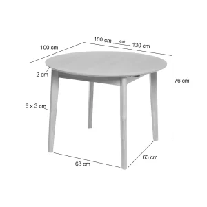 - Forma: mesa redonda extensible (hasta 130 cm).