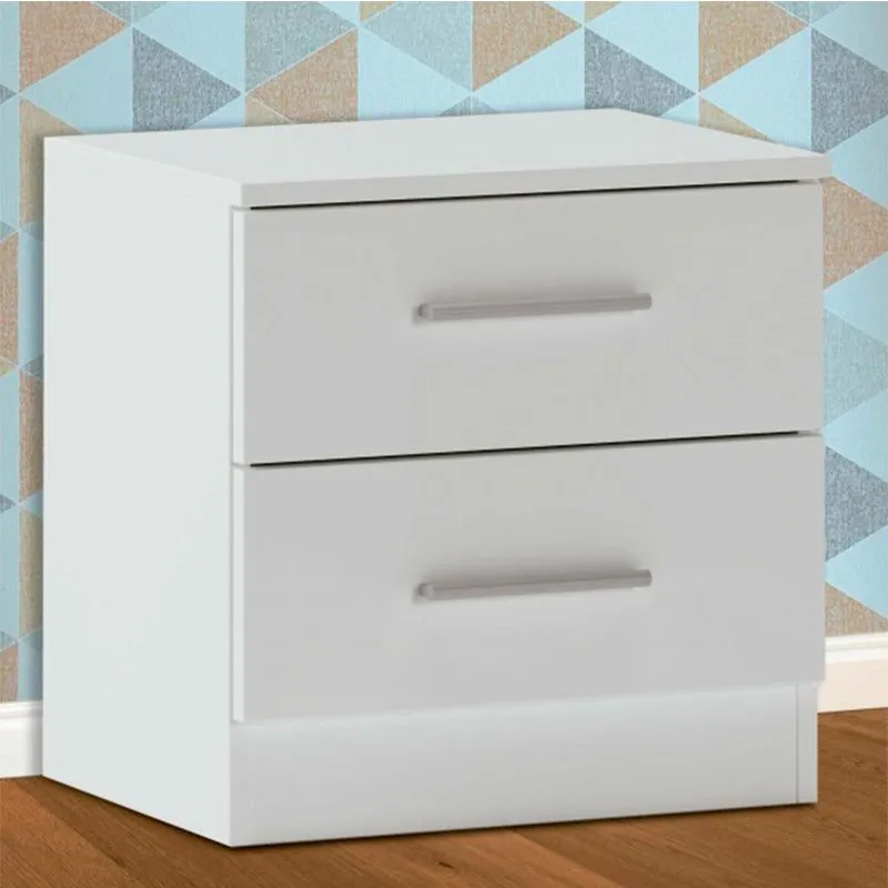 Dispone de dos cajones espaciosos con tiradores metálicos que facilitan su apertura, ideales para guardar objetos personales, libros, dispositivos electrónicos o cualquier elemento que necesites tener a mano. Su estructura robusta ofrece estabilidad y resistencia al uso diario, manteniendo una línea elegante gracias a sus acabados lisos y cuidados.