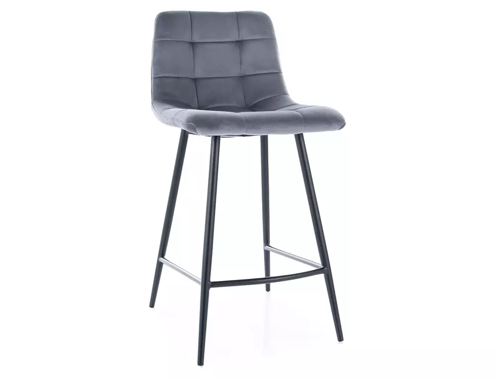 Mila H-2 Velvet es un taburete de barra esbelto con asiento tapizado en terciopelo y respaldo medio.