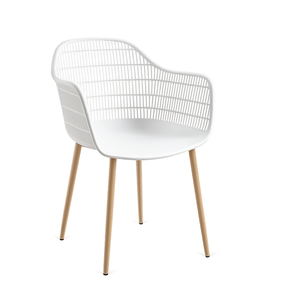 La silla blanca con patas de madera combina diseño moderno, elegancia y comodidad, convirtiéndose en una opción ideal para comedores, terrazas, jardines o espacios interiores contemporáneos. Su estilo minimalista y ligero aporta luminosidad al ambiente y se adapta fácilmente a diferentes tipos de decoración.
