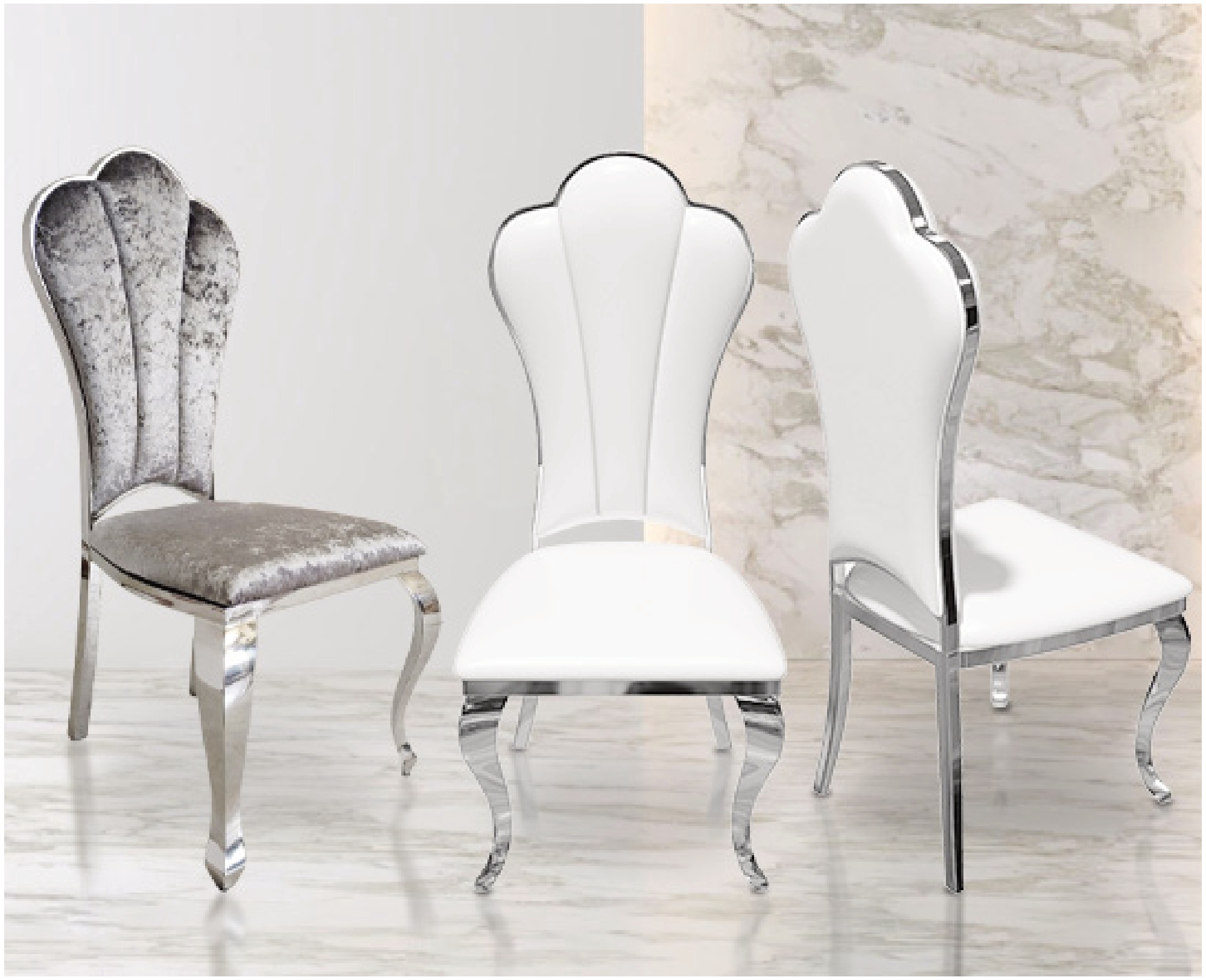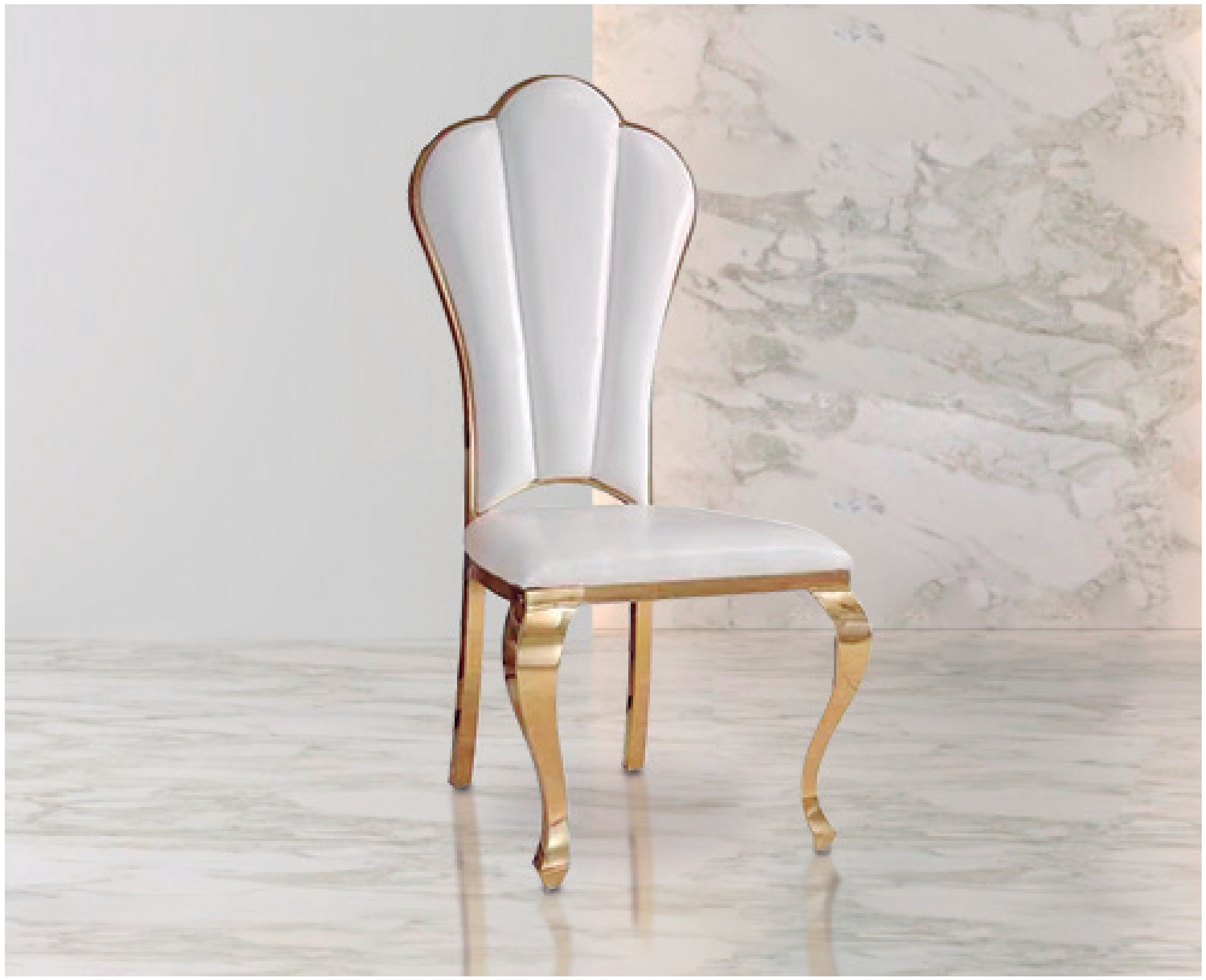 Silla acero ORO + polipiel BLANCA