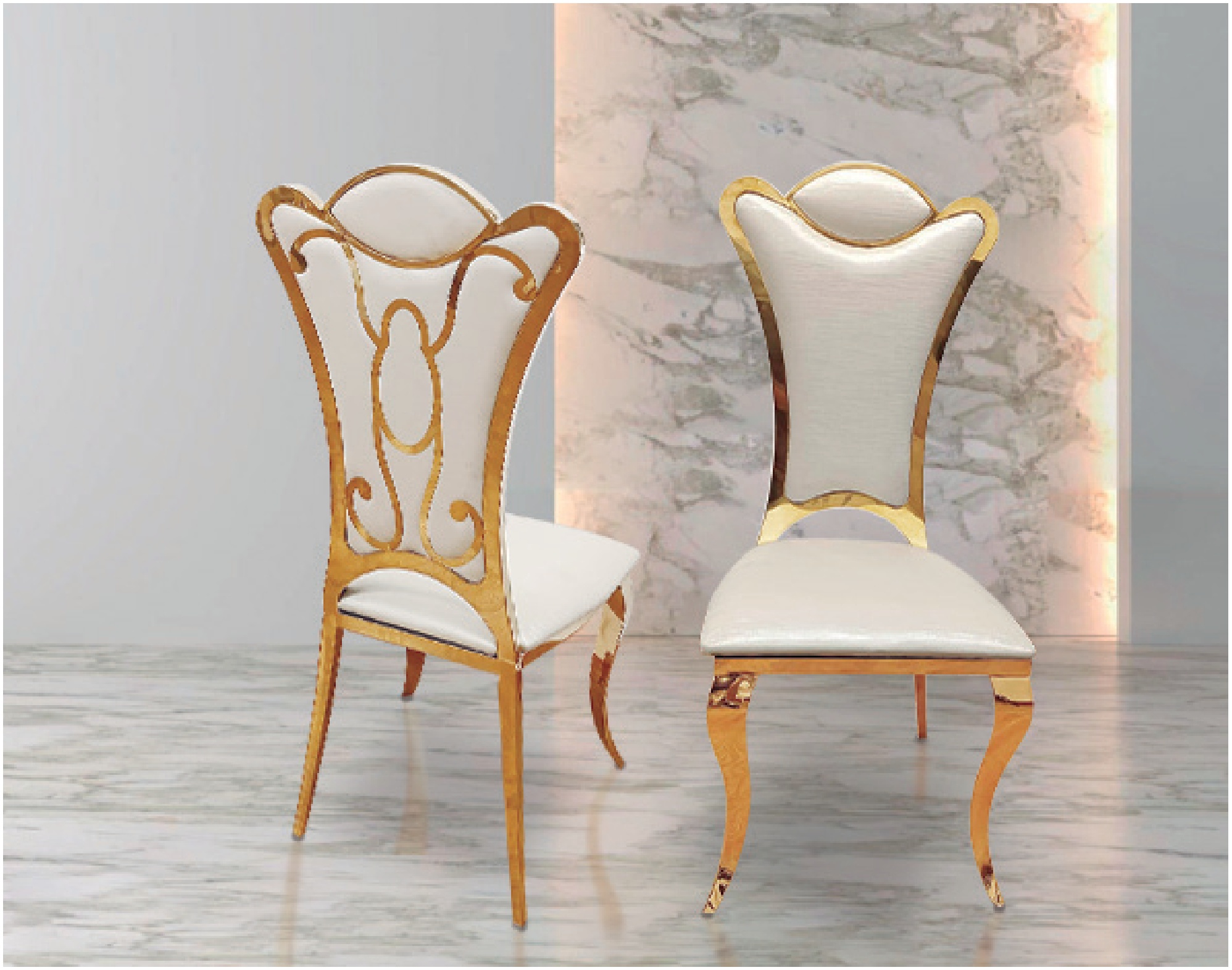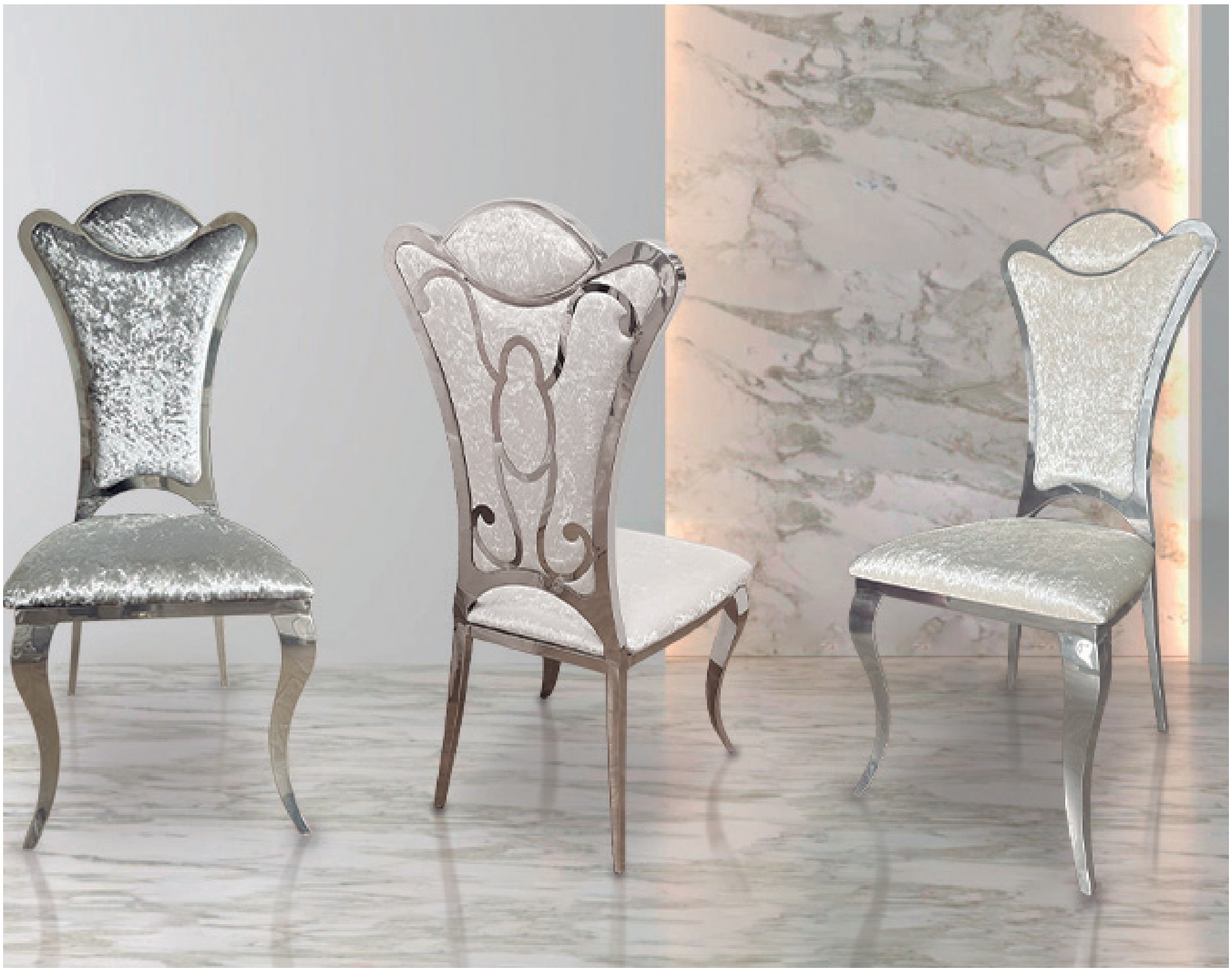 Silla acero CROMO + Terciopelo BLANCO