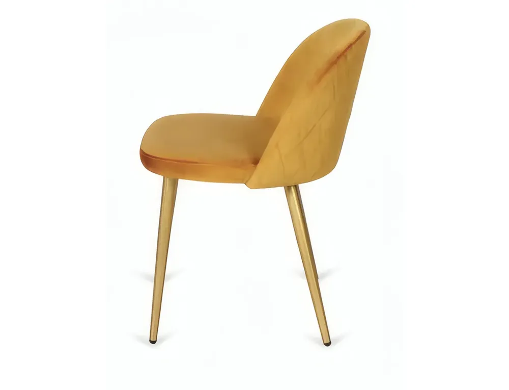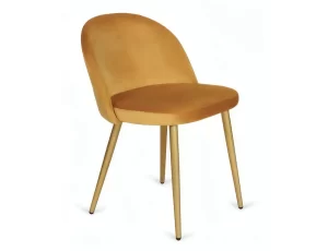 Zaragoza Velvet Dorado es una silla de comedor tapizada en terciopelo dorado que se convierte en pieza protagonista del comedor.